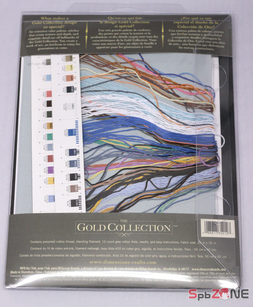 | В набор входит | хлопковая канва Aida 16 ct серо-голубого цвета, хлопковое мулине Dimensions, 3-х цветная символьная схема, игла, инструкция (русский язык есть) |