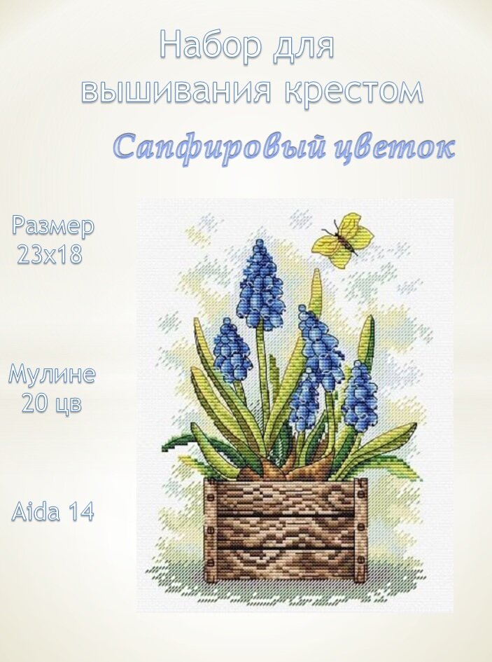 | Комплектация | Канва Aida 14 ct белая, хлопковое мулине, игла, схема, инструкция. |