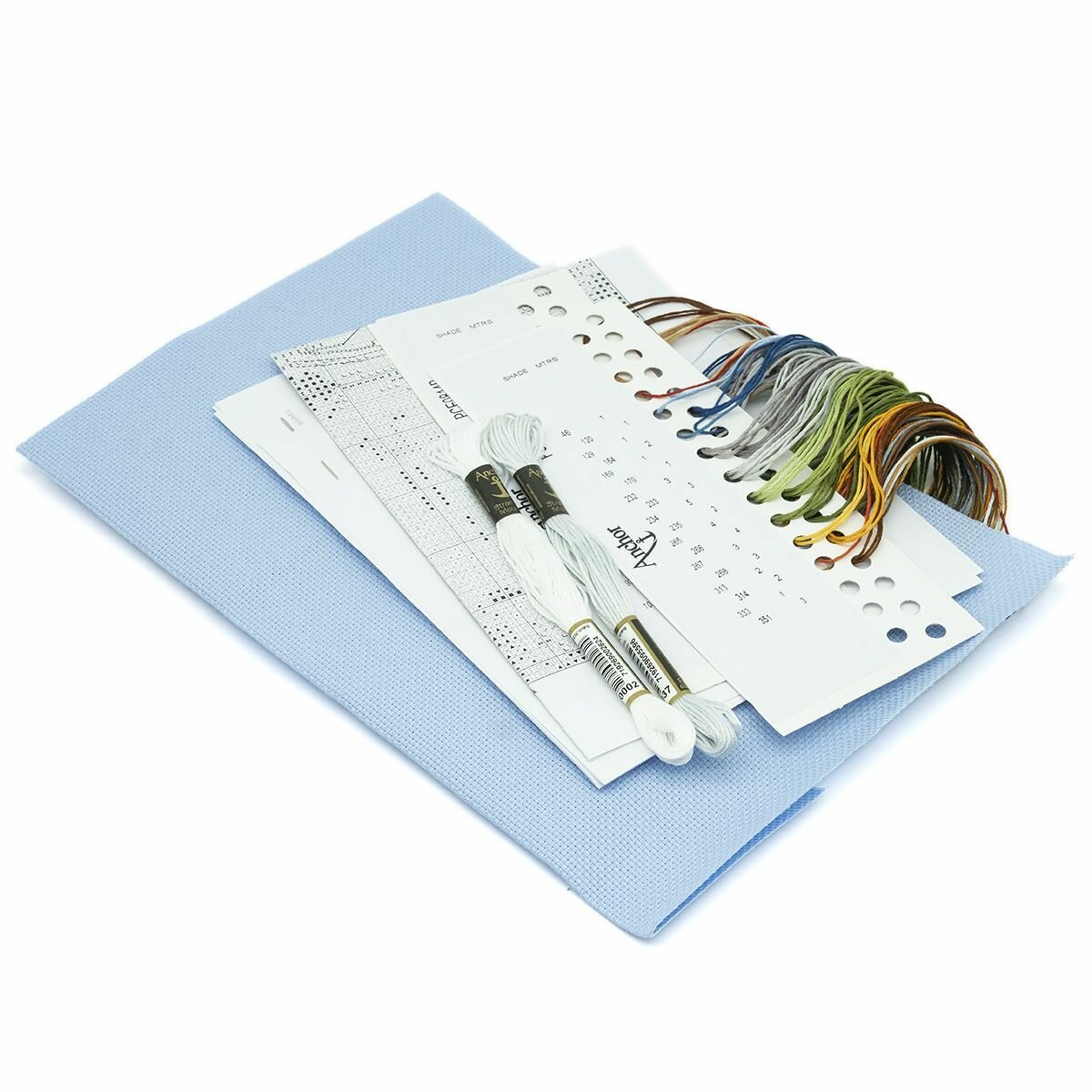 | В набор входит | хлопковое мулине Anchor, аида 16 голубого цвета, игла, схема, инструкция. |