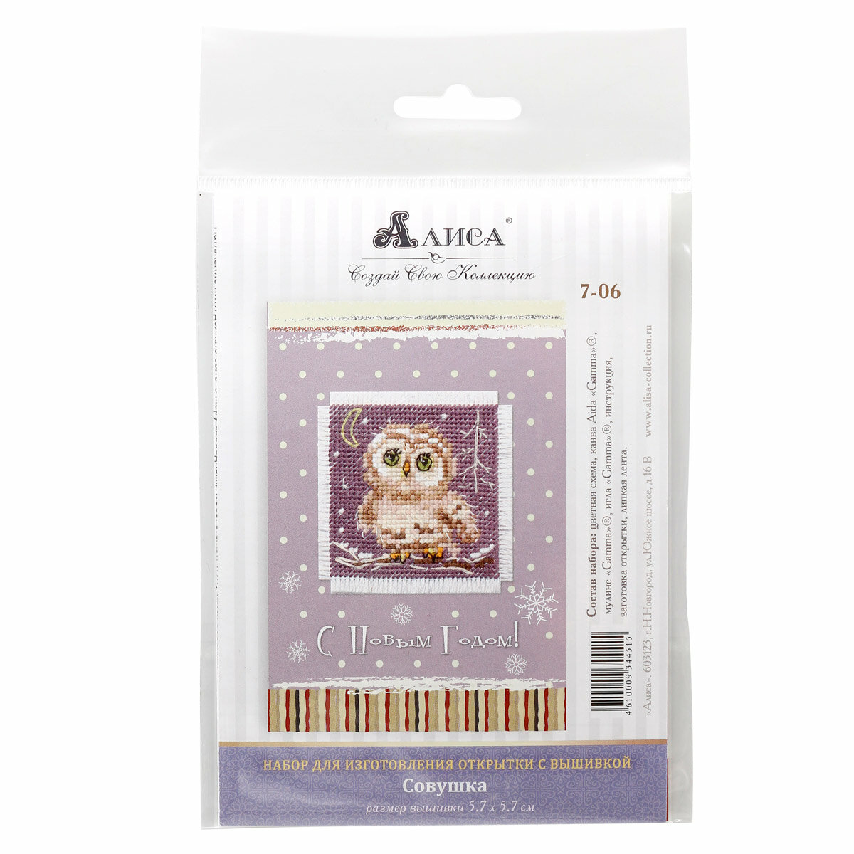 7-06 Совушка. Открытка Алиса (размер: 5,7х5,7 см)