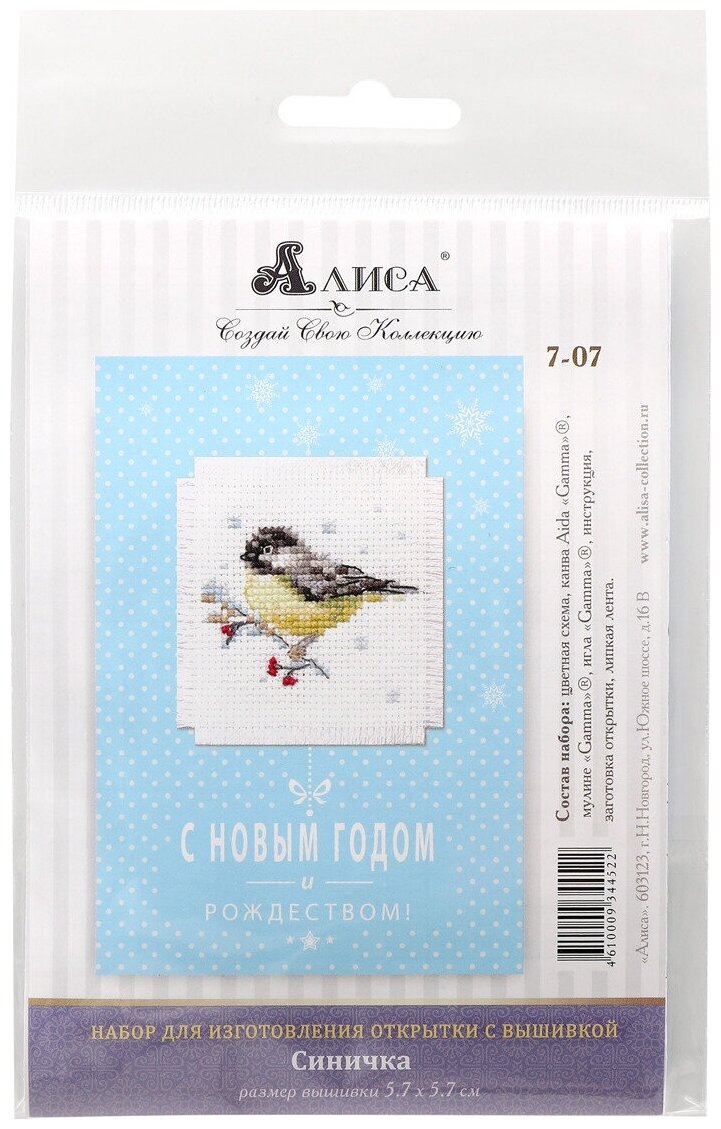 - Открытка с синичкой: Алиса арт. 7-07. Обзор набора и готовая работа