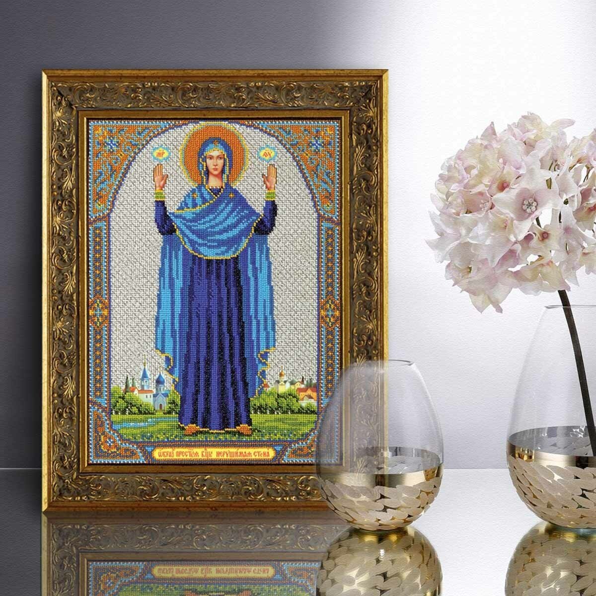 Бисер – традиционный материал для украшения икон. Его ценят за яркий блеск, многообразие цветовой палитры, долговечность. Для вышивания используется ювелирный бисер PRECIOSA ORNELA первого сорта. Он тщательно откалиброван и не имеет бракованных элементов. Ювелирный бисер меньше стандартного, работа с ним потребует особой аккуратности, но результат того стоит.