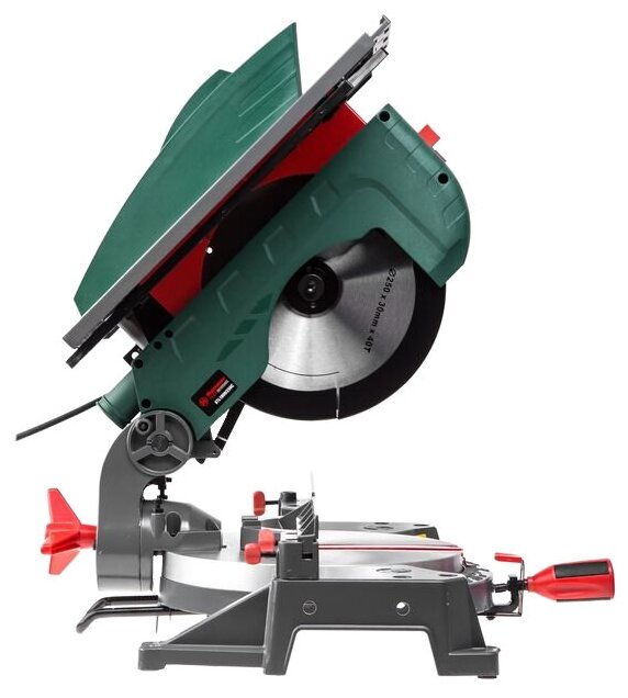 Пила торцовочная предназначена как стационарный инструмент для выполнения продольных и поперечных резов в древесине. При этом возможны горизонтальные и вертикальные углы распиливания. Мощность электроинструмента рассчитана для пиления твердой и мягкой древесины, а также стружечных и древесноволокнистых плит.