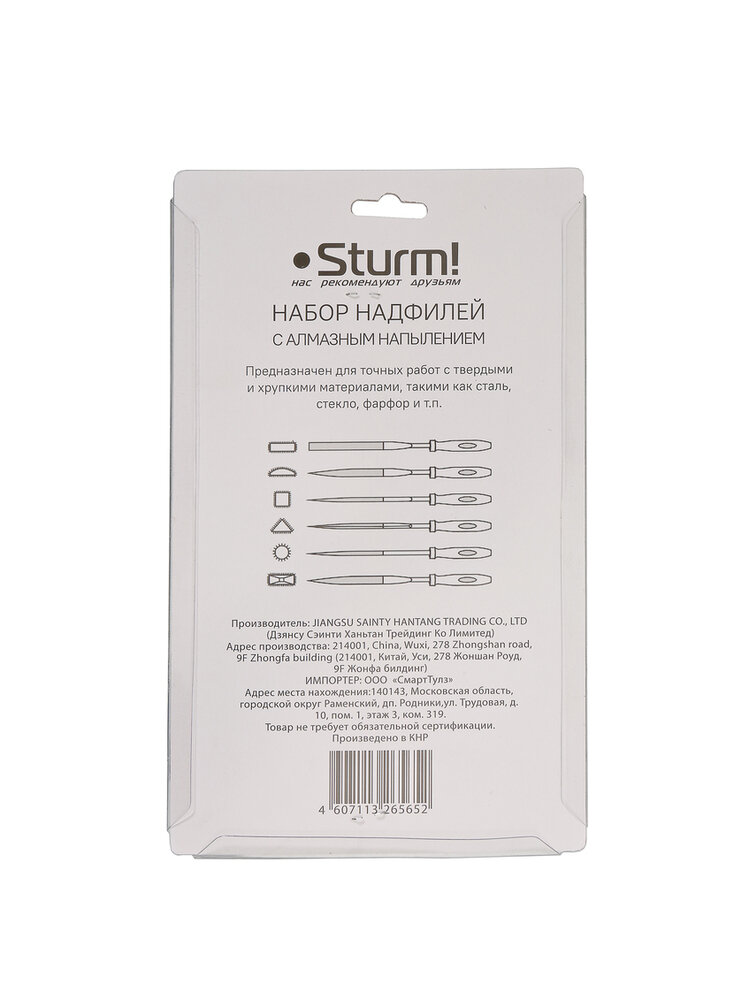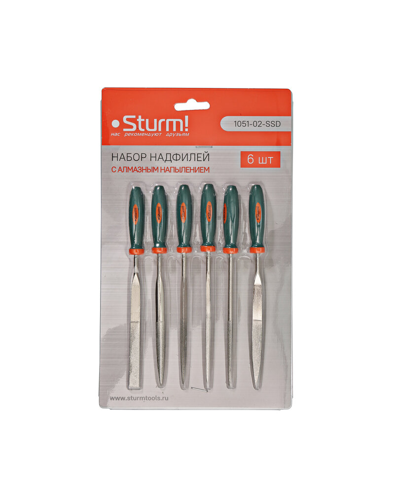 – В наборе надфилей с алмазным напылением Sturm 6 инструментов;
