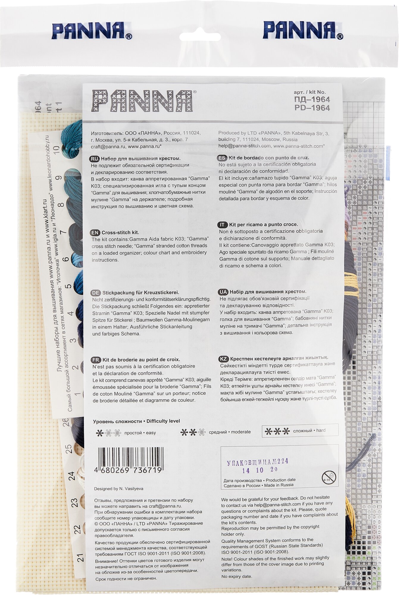 | Комплектация | Aida 11 Gamma (кремовый); Игла; Инструкция; Схема; Хлопковое мулине Gamma - 24 цвета |
