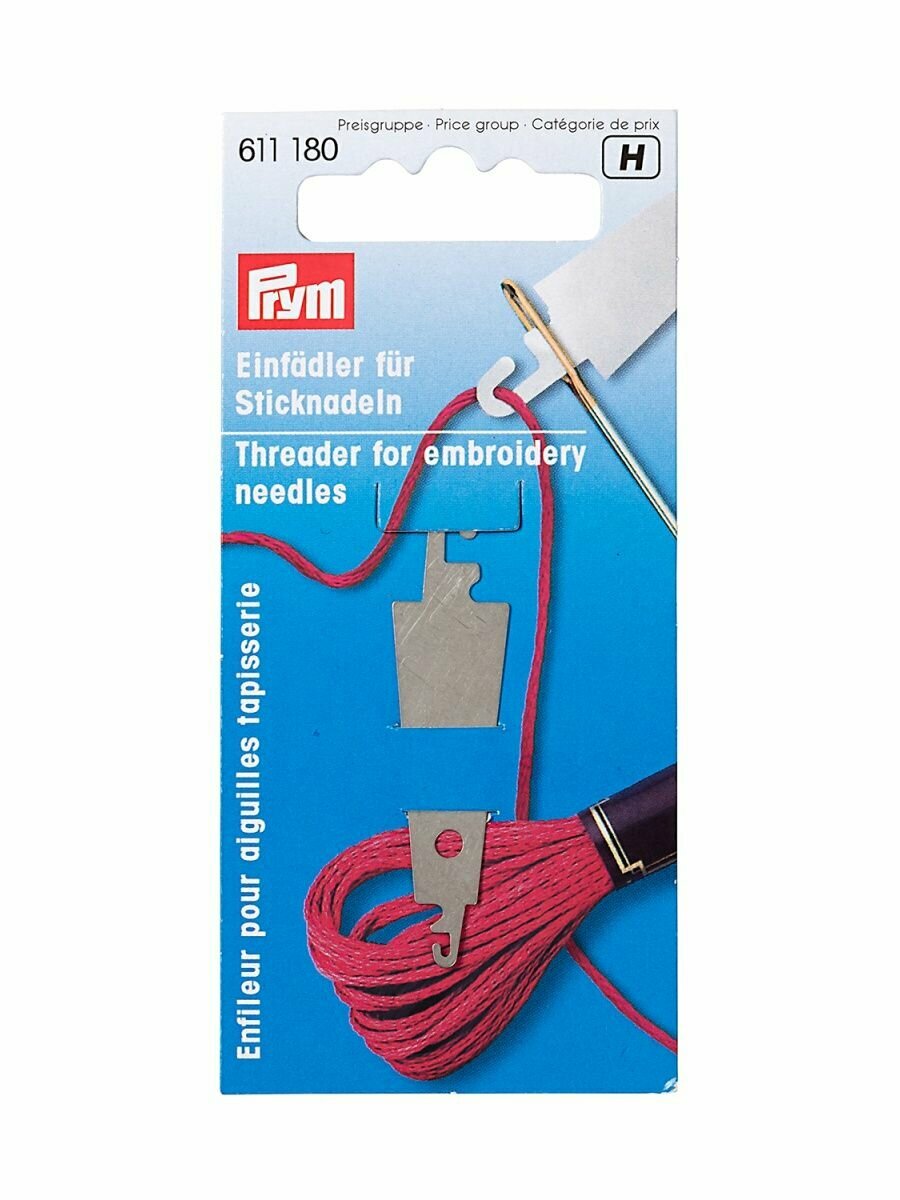 Нитевдеватель PRYM для игл для вышивки Нитевдеватель толстых нитей и шерсти для игл для вышивания Изготовлен из нержавеющей стали 2 открытых крюка для вдевания различного размера Нитепродергиватель для игл для вышивки – это плоская пластинка из нержавеющей стали с двумя крюками различного размера с каждой стороны для игл разного размера. Он работает по тому же принципу, что и классический нитепродергиватель, но позволяет существенно большие нагрузки. Поскольку нержавеющая сталь делает его необычайно стабильным, с его помощью можно без проблем вдевать также толстые нитки и пряжу через узкое ушко. Тем самым этот нитевдеватель является незаменимым помощником при вышивании и узловязании.