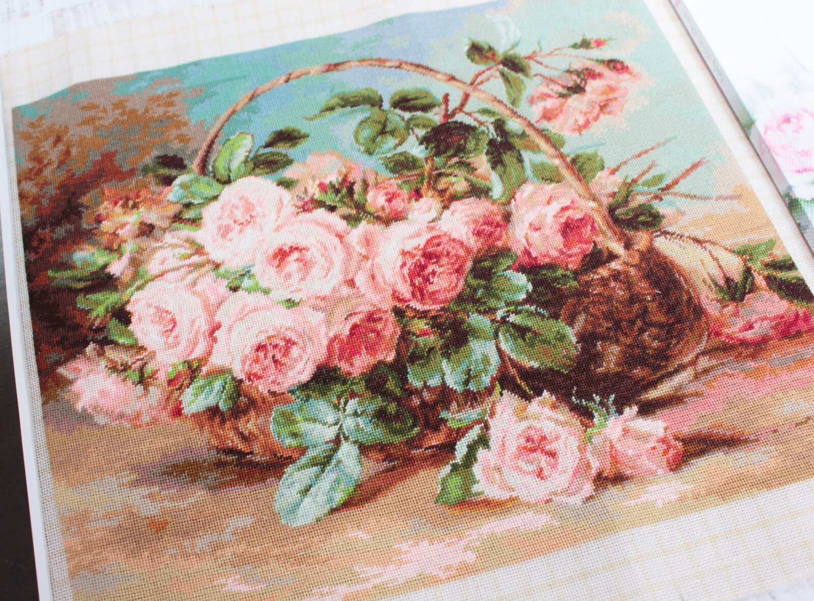 - Вышитая картина "Натюрморт" от Luca-S + обзор B465 Магнолии, G547 Корзина с розами