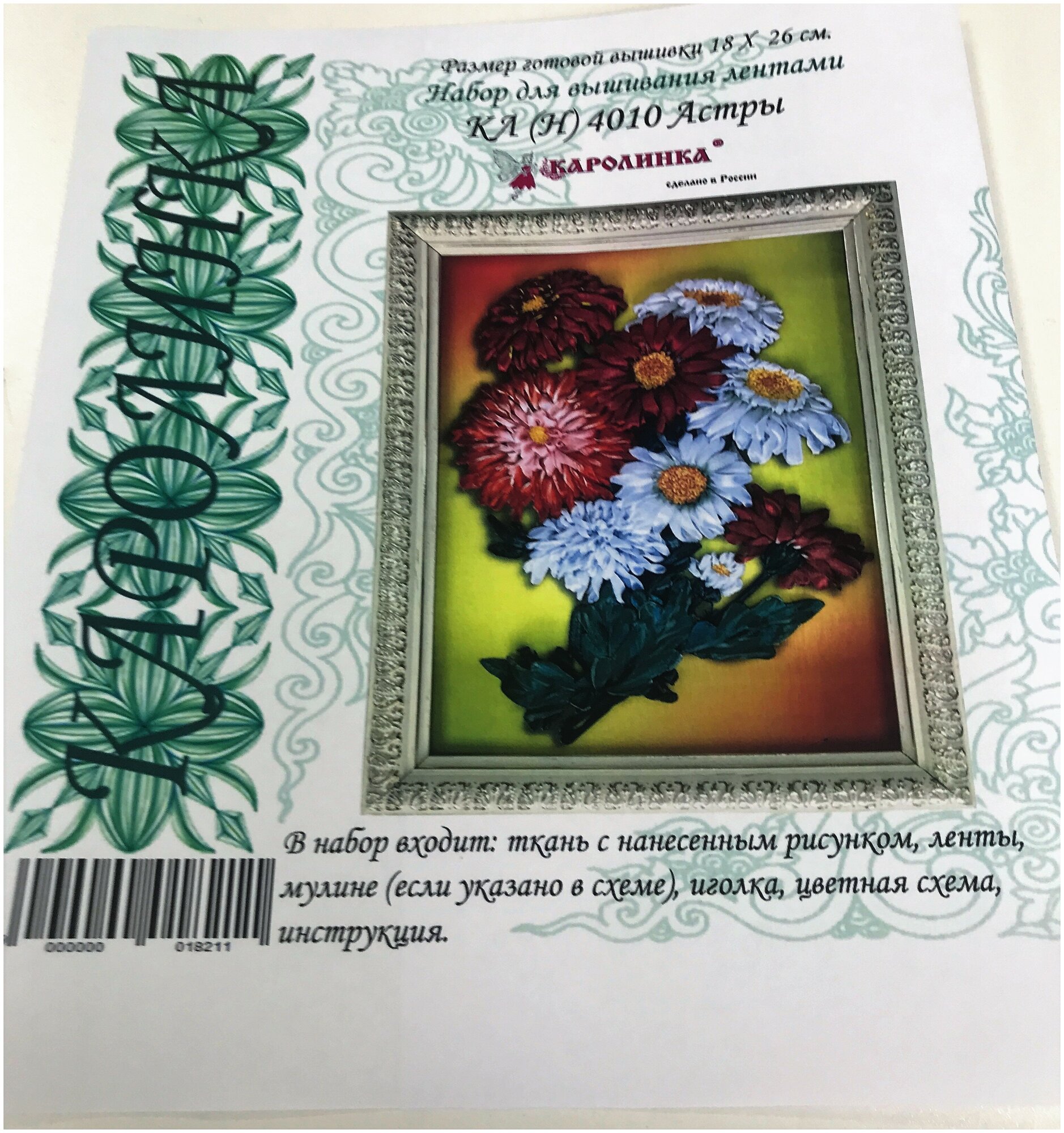 | В набор входит | ткань с нанесенным рисунком, ленты, мулине, игла, инструкция |