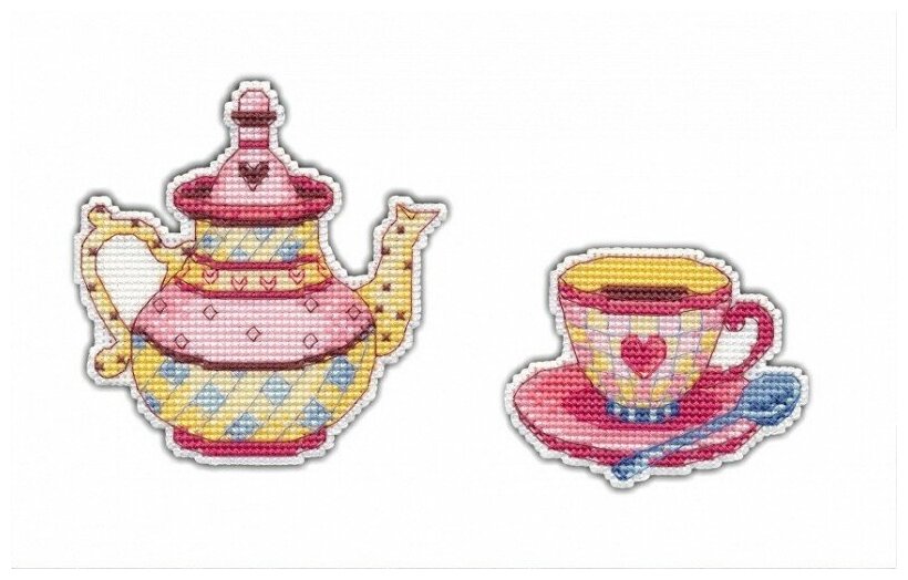 Набор Приятного чаепития 10х10 Овен 1080 10х10; 8х6 Овен 1080 Состав: канва пластиковая 14 Aida, магнитная основа, нитки мулине 100% хлопок (11 цветов), игла, цветная схема, инструкция на русском языке.