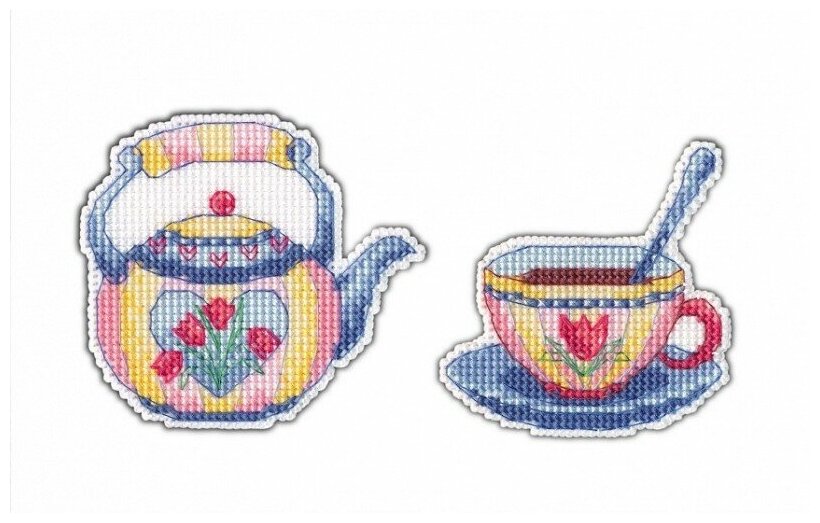Набор Приятного чаепития-2 9х8 Овен 1085 9х8; 7х7 Овен 1085 Состав: канва пластиковая 14 Aida, магнитная основа, нитки мулине 100% хлопок (12 цветов), игла, цветная схема, инструкция на русском языке.