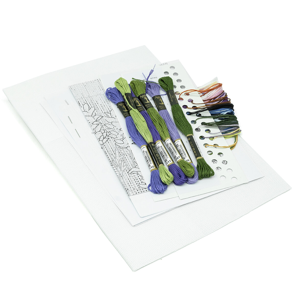 В наборе: канва Aida 16, нитки мулине Anchor, игла, схема, инструкция.