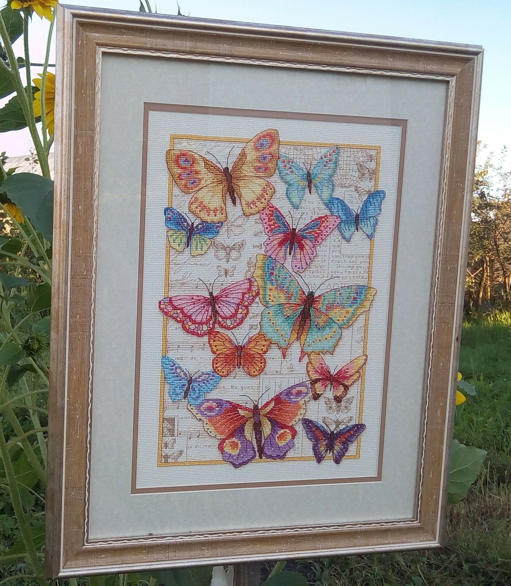 Техника: Счетный крест (Counted Cross Stitch) Размер вышивки: 25,4х35,5 см. В состав набора входит: канва для вышивания Aida 14 цвета слоновой кости (ivory), игла, хлопковые нитки мулине (разобранные на органайзере), схема, инструкция. Паспарту и рамка в комплект не входят. Бабочки, пожалуй, самая прекрасная тема для вышивания. В Китае бабочка является символом бессмертия, радости и лета. Так чудесно, когда под вашими пальцами оживают самые настоящие бабочки, а работать над такими сюжетами — одно удовольствие. Обратите внимание: из-за индивидуальных настроек каждого монитора возможны расхождения в точности передачи цветов.