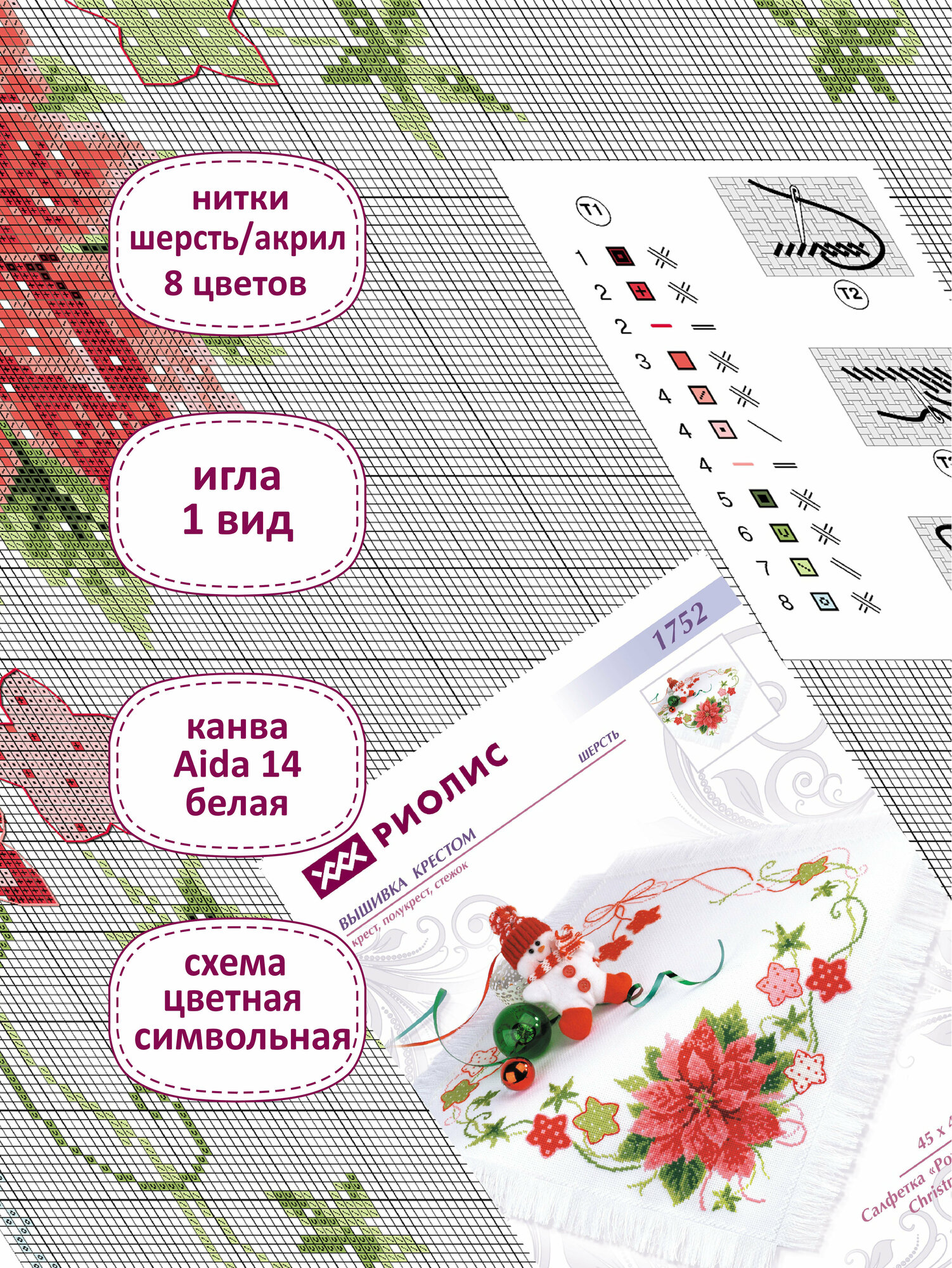 - Риолис салфетка рождественская 1752 пуансеттия 1729 зимние подарочки 1890