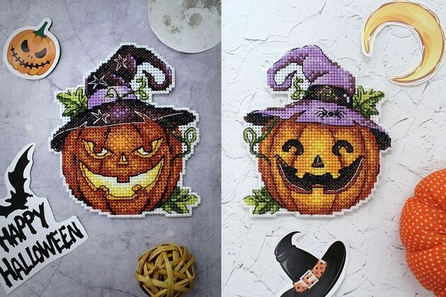 - Вышивка на Хеллоувин 2019, ТМ "ЖАР-птица" Р-313 Праздничная тыква", Р-304 Летучий джентельмен.