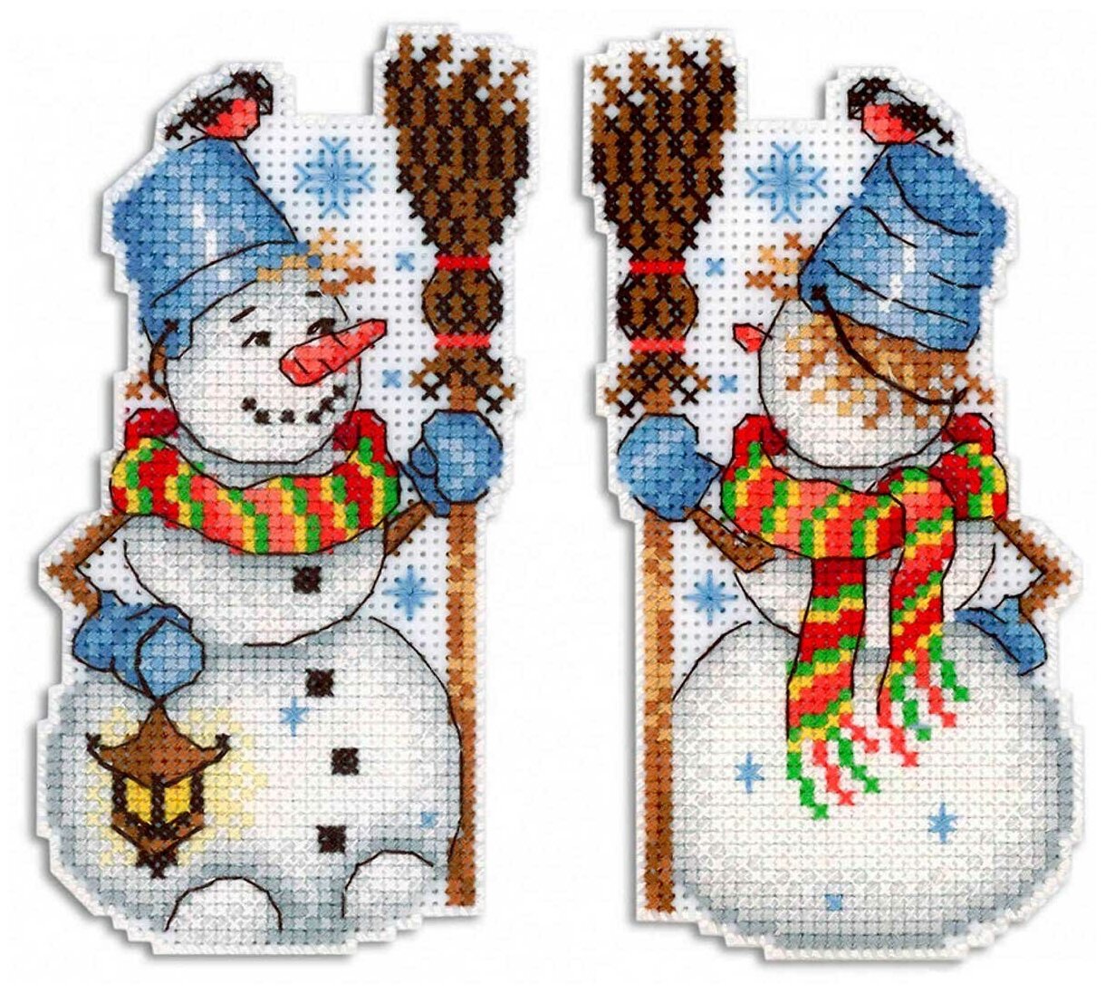 Сделайте своими руками яркий сувенир 'Снеговик' – это увлекательно и быстро. Набор подойдет даже начинающим, достаточно проявить терпение, аккуратность и освоить простую технику 'крест'. Пяльцы или рамки не понадобятся – пластиковая канва отлично держит форму. Готовые элементы надо вырезать по контуру и соединить между собой аккуратными стежками. При желании вклейте между деталями ленту-подвес. Украсьте этим сувениром праздничный интерьер или преподнесите его как подарок. В наборе: пластиковая канва Aida 14, магнитная основа, хлопковые нитки мулине, бисер, игла, цветная схема, инструкция. Количество цветов: 17. Размер: 13х7 см.