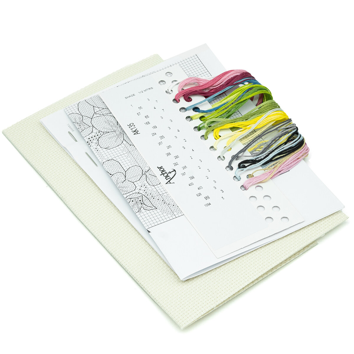 Состав набора: канва для вышивания Aida 11, нитки мулине Anchor, игла, схема, инструкция.