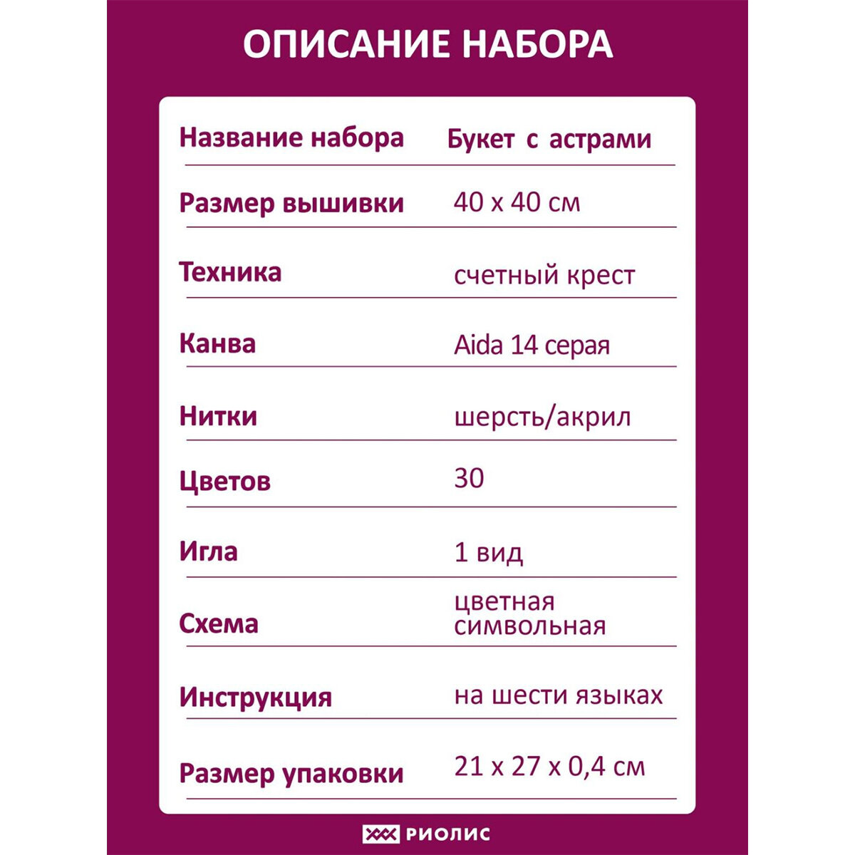 На сегодняшний день товар «1773 "Букет с астрами" Риолис (Сотвори Сама) (размер: 40х40 см)» можно купить с кешбеком в 1 магазине: Яндекс.Маркет
