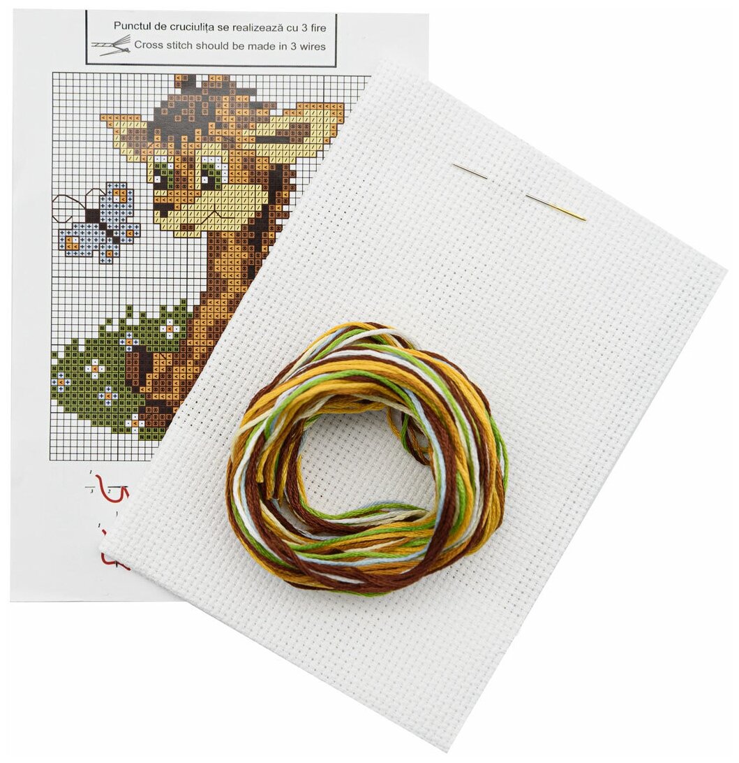 | В набор входит | канва Aida 14 Zweigart белого цвета, хлопковое мулине Anchor 7 цветов, игла, черно-белая символьная схема, инструкция |