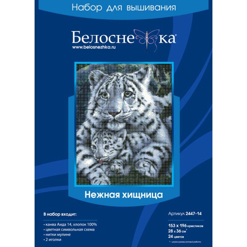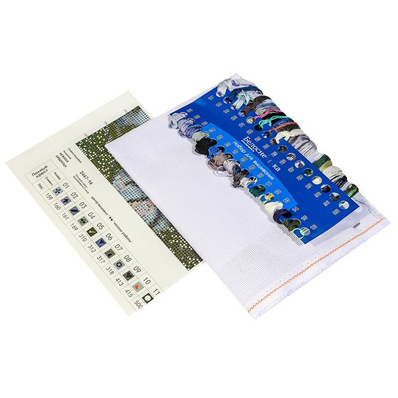 | В набор входит | хлопковая канва Aida 14 ct белого цвета, хлопковое мулине (24 цвета), разобранное на бумажном органайзере, 2 иглы, цветная символьная схема, инструкция по вышиванию. |