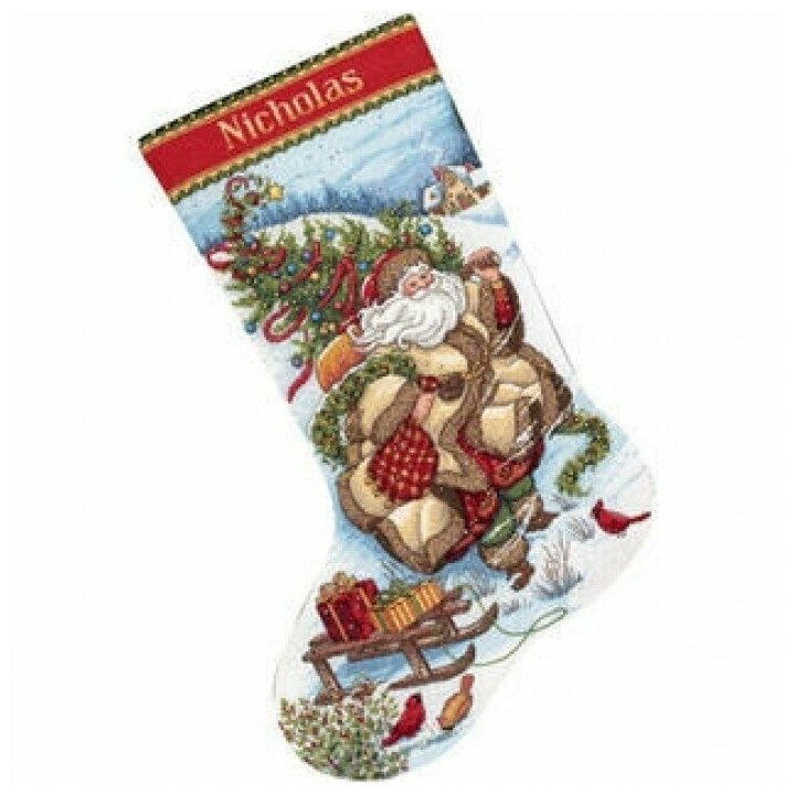 | В набор входит | хлопковое мулине Dimensions, металлизированные нити, бисер, аида 18 белого цвета для передней части носка, ткань (войлок белого цвета) для задней части носка, игла, схема, общая инструкция на русском языке |