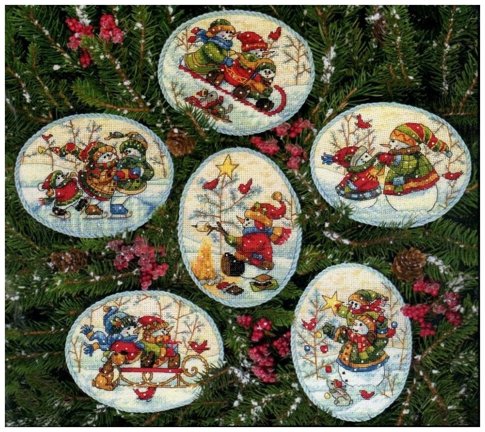 На сегодняшний день товар «Набор для вышивания крестом Dimensions "Украшения. Игривые снеговики" 11x9 см арт. 08828» можно купить с кешбеком в 1 магазине: Яндекс.Маркет