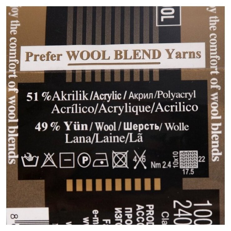 Пряжа очень нежная, приятная на ощупь, состоит наполовину из шерсти, что придает тепло и легкость, и высококачественного акрила, который позволяет изделию отлично держать форму, обеспечивает устойчивость к усадке и выцветанию, не скатывается.