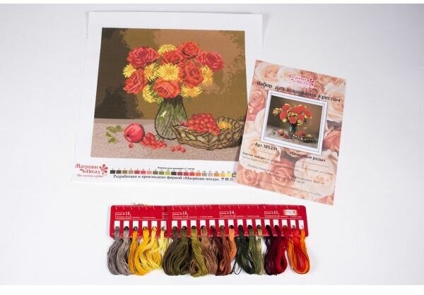 Набор для вышивания крестом с нанесенным рисунком от фабрики Матренин посад. Состав: канва с нанесенным рисунком, нитки мулине, руководство по вышиванию, игла. Компания «Матренин Посад» на протяжении последнего десятилетия является одним из крупнейших российских производителей канвы для вышивки с нанесенным рисунком, наборов для вышивания с нитками, с бисером. Качество всей продукции подтверждено сертификатом соответствия № РОСС RU. АЕ10. Н05500. Все разработки перед запуском в производство предварительно отшиваются профессиональными мастерицами для отработки проблемных мест. Разработки фабрики «Матренин Посад» максимально приближены к оригиналам художников, и вышитый рисунок получается произведением рукотворного искусства.