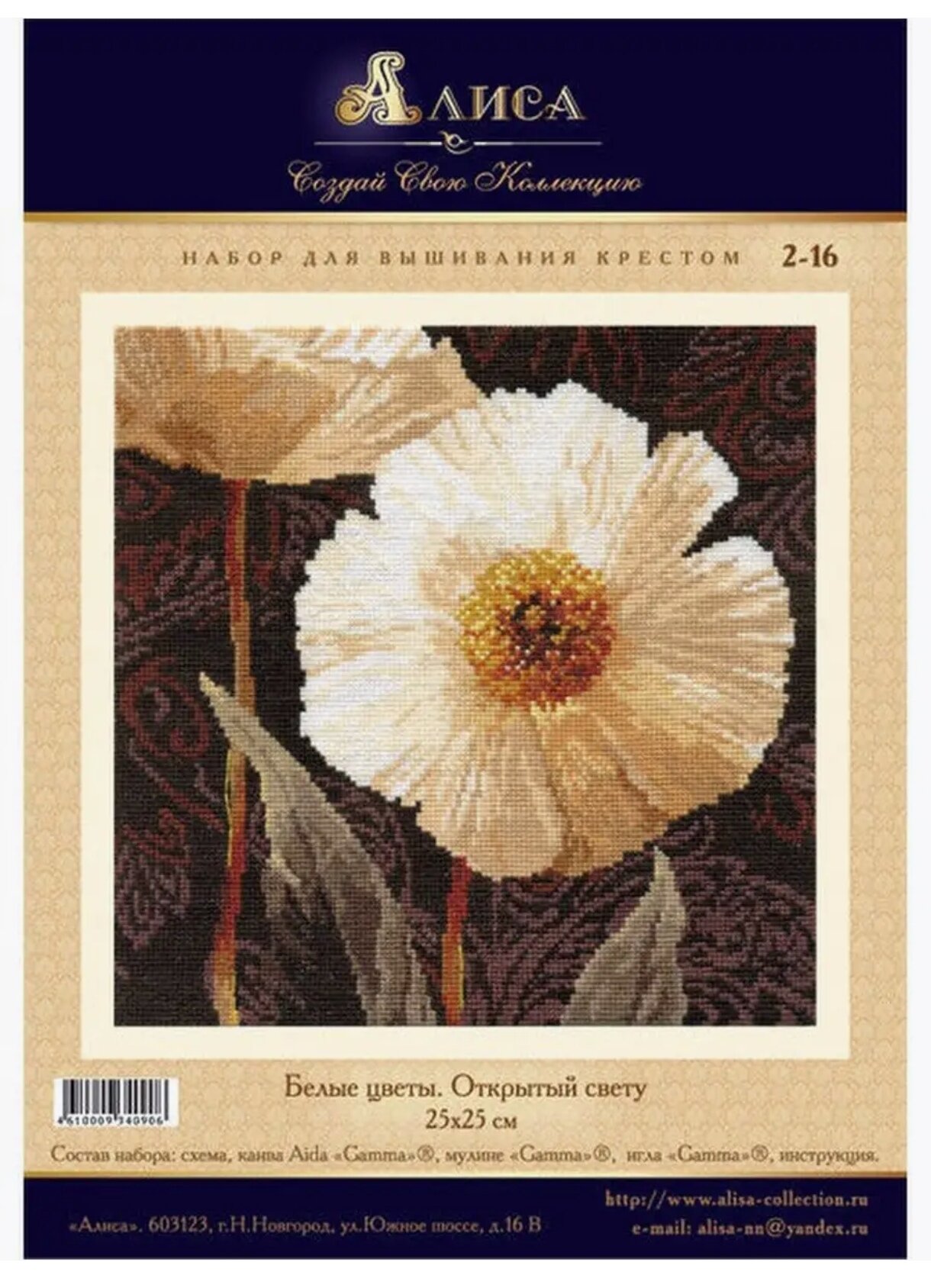 Сервис сравнения цен СкидкаГИД предлагает сравнить цены на товар «2-16 Белые цветы: Открытый свету Алиса (размер: 25x25)»