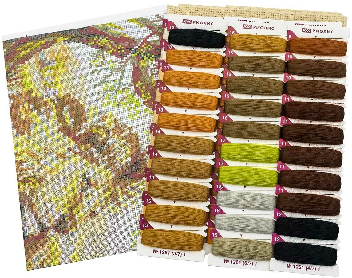 | В набор входит | хлопковая канва Aida Zweigart 10 ct бежевого цвета, мулине шерсть (20 цветов), игла, цветная символьная схема, инструкция по вышиванию. |