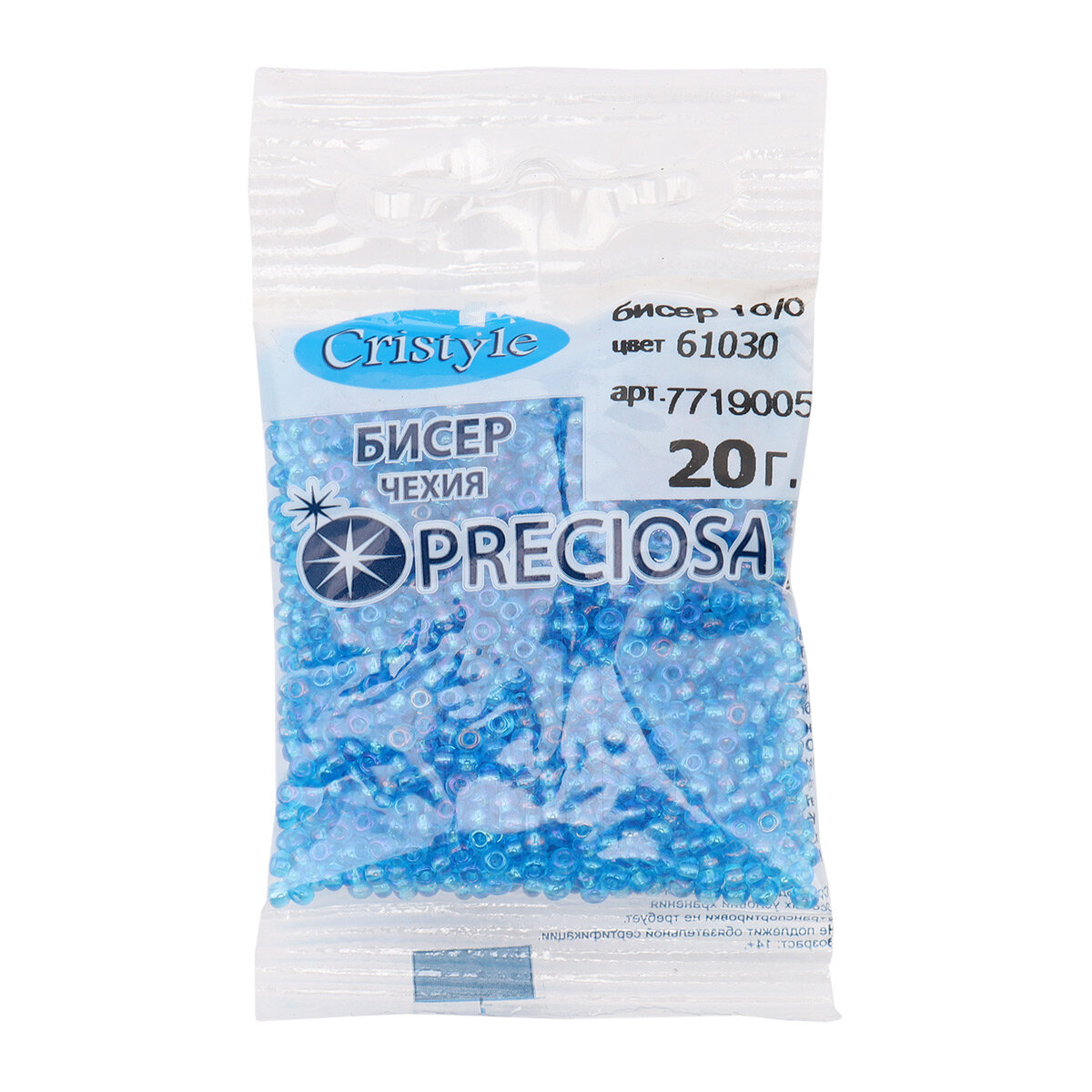 61030 Бисер прозр. радужный 10/0 20гр Preciosa (размер: 10/0=2,1-2,4мм)