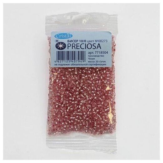 08273 Бисер цветной с серебр.центром 10/0 20гр Preciosa (размер: 10/0=2,1-2,4мм)