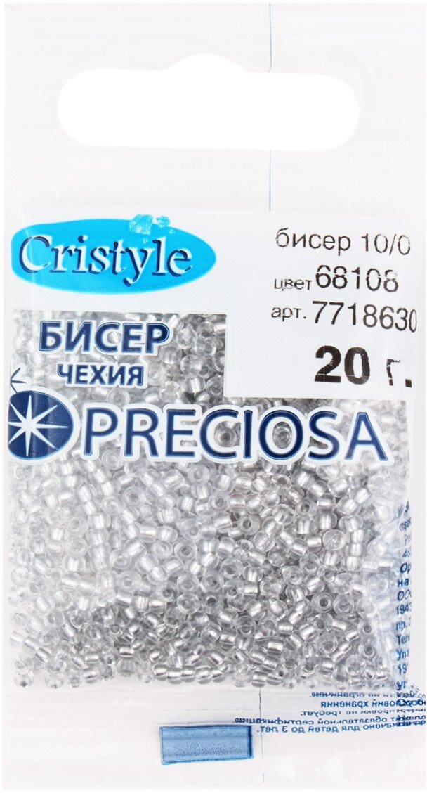 68108 Бисер прозр. с алюмин.центром 10/0 20гр Preciosa (размер: 10/0=2,1-2,4мм)