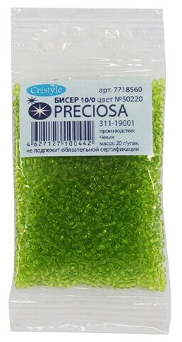 50220 Бисер прозр. 10/0 20гр Preciosa (размер: 10/0=2,1-2,4мм)