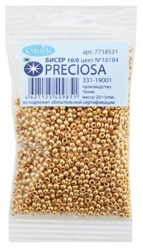 18184 Бисер золото 10/0 20гр Preciosa (размер: 10/0=2,1-2,4мм)