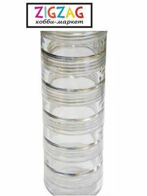Контейнер из прозрачного пластика, предназначен для организованного хранения бисера, бусин, фурнитуры и других мелочей. Имеет 6 закручивающихся секций, для верхнего контейнера предусмотрена крышечка.
