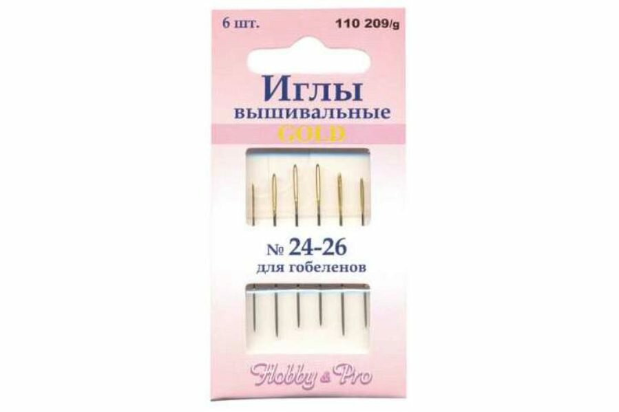 110209/g Иглы ручные с золотым ушком для гобеленов №24-26 6шт. HobbyPro