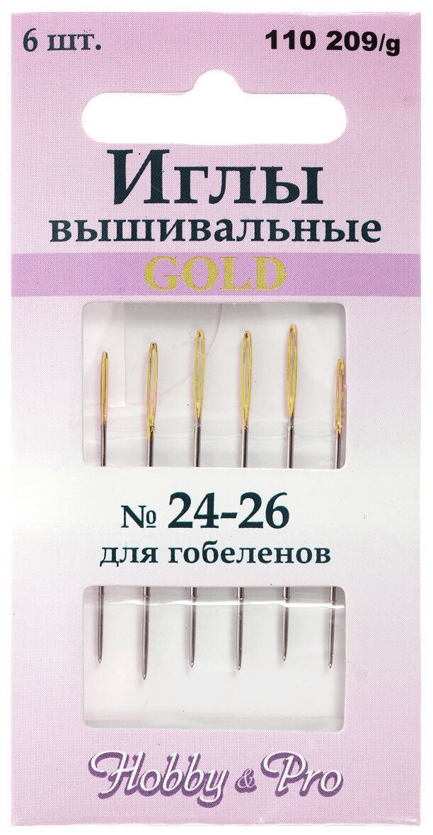 На сегодняшний день товар «110209/g Иглы ручные с золотым ушком для гобеленов №24-26 6шт. HobbyPro» можно купить с кешбеком в 1 магазине: Яндекс.Маркет