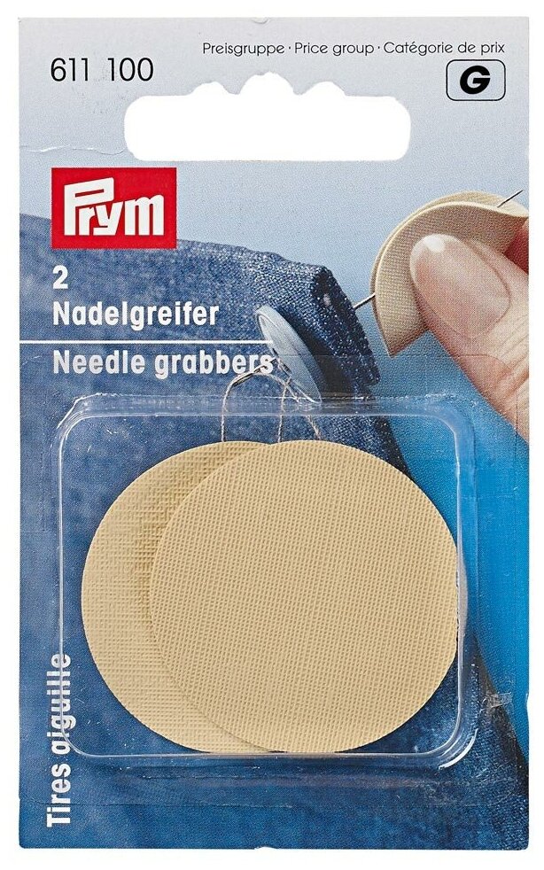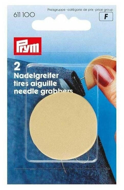 Prym 611100 Грейфер для игл, резиновая пластинка Круглая резиновая пластинка для захвата швейной иглы без проскальзывания Грейфер защищает пальцы при сшивании твердых материалов В каждой упаковке находятся 2 штуки Размеры Ø 3,5 см Грейферы для игл – это две круглых пластинки из резины, которые используются там, где швейная игла протягивается через несколько слоев ткани или прочные материалы. При зажатии между большим и указательным пальцем они охватывают стержень иглы и таким образом проскальзывают при протягивании иглы. За счет этого необходимо существенно меньше сил и тем самым гарантируется работа без устали. Это делает их практичным аксессуаром на швейном месте.