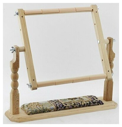 Настольный, держатель пялец в комплектации с рамой обеспечивает комфортную работу вышивальщицы сидя на диване, в кресле или за столом.