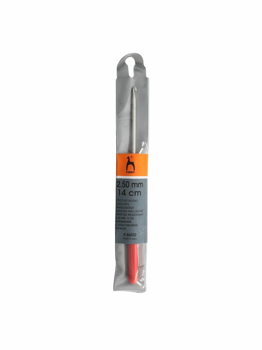46202 Крючок вязальный 250 мм/ 14 см алюминий с пластиковой ручкой PONY