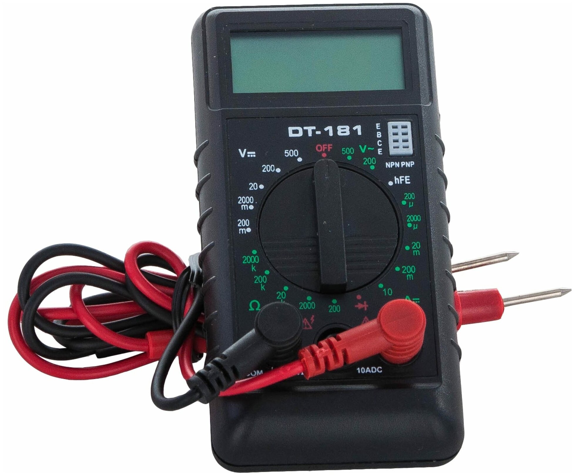 Мультиметр Ресанта DT 181 предназначен для измерения напряжения, тока, сопротивления, емкости, проверки диодов, транзисторов, звуковой прозвонки. Имеет высокую чувствительность - 100 мкВ.