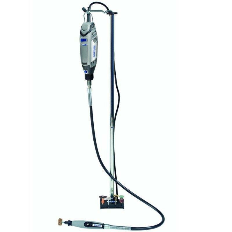 Разместите многофункциональный инструмент Dremel при работе с гибким валом (225) на надежный штатив, что дополнительно облегчит вашу работу и освободит рабочее пространство, позволяя сконцентрироваться на выполняемой операции. Поскольку сам инструмент зафиксирован на штативе и вы работаете гибким валом, значительно снижается нагрузка на кисть, обеспечивается оптимальный хват и увеличивается точность при гравировке, абразивной обработке, полировке и других работах. Подвешивание инструмента на штативе значительно повышает маневренность при использовании приставки – гибкого вала (225).