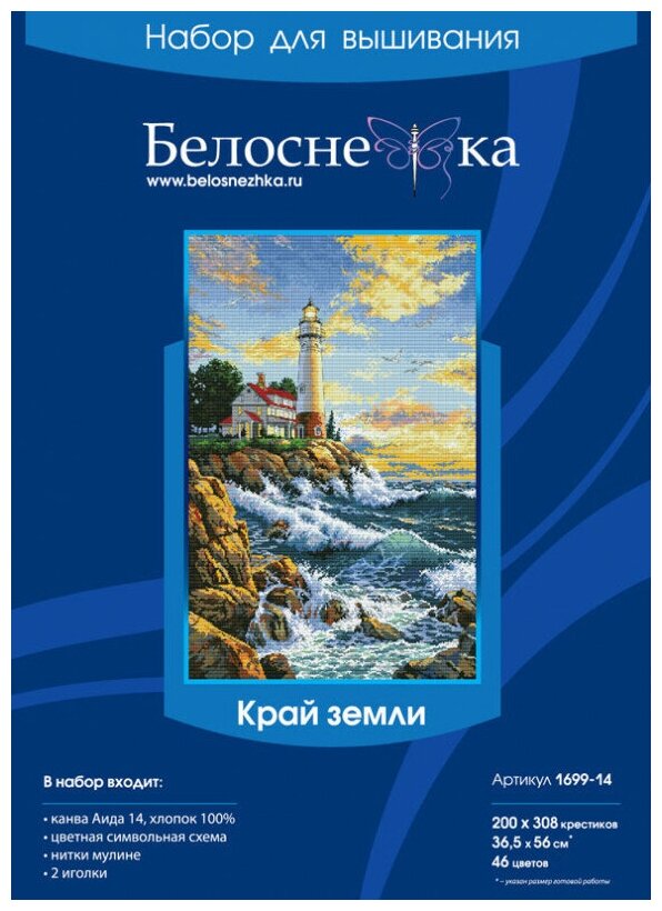 Представьте, как же здорово оформить ручную работу в рамку, украсить ею стену своей комнаты или поставить на любимую полку! Всё это возможно при покупке набора для вышивания крестиком от торговой марки Белоснежка, который является отличным вариантом для хобби и приятным подарком для любой рукодельницы. Обеспечьте комфортные условия труда и извлеките максимальную пользу от процесса. Обязательно позаботьтесь о достаточном освещении рабочего места и безопасности для зрения во время работы над вышивкой. Вышивальные хитрости. Канва: белая 100% хлопок 14СТ. Серия: море, маяки. Количество цветов: 46. Количество крестиков: 200*308. Размер готовой работы: 36.5/56 см. Техника вышивки: счетный крест.