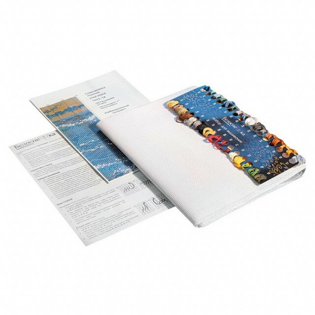 | В набор входит | хлопковая канва Aida 14 ct белого цвета, хлопковое мулине (46 цветов), разобранное на бумажном органайзере, 2 иглы, цветная символьная схема, инструкция по вышиванию. |