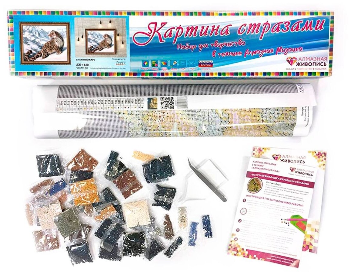 Сервис сравнения цен СкидкаГИД предлагает сравнить цены на товар «Снежный барс (АЖ-1520) - картина стразами Алмазная живопись (размер: 50х40 см)»