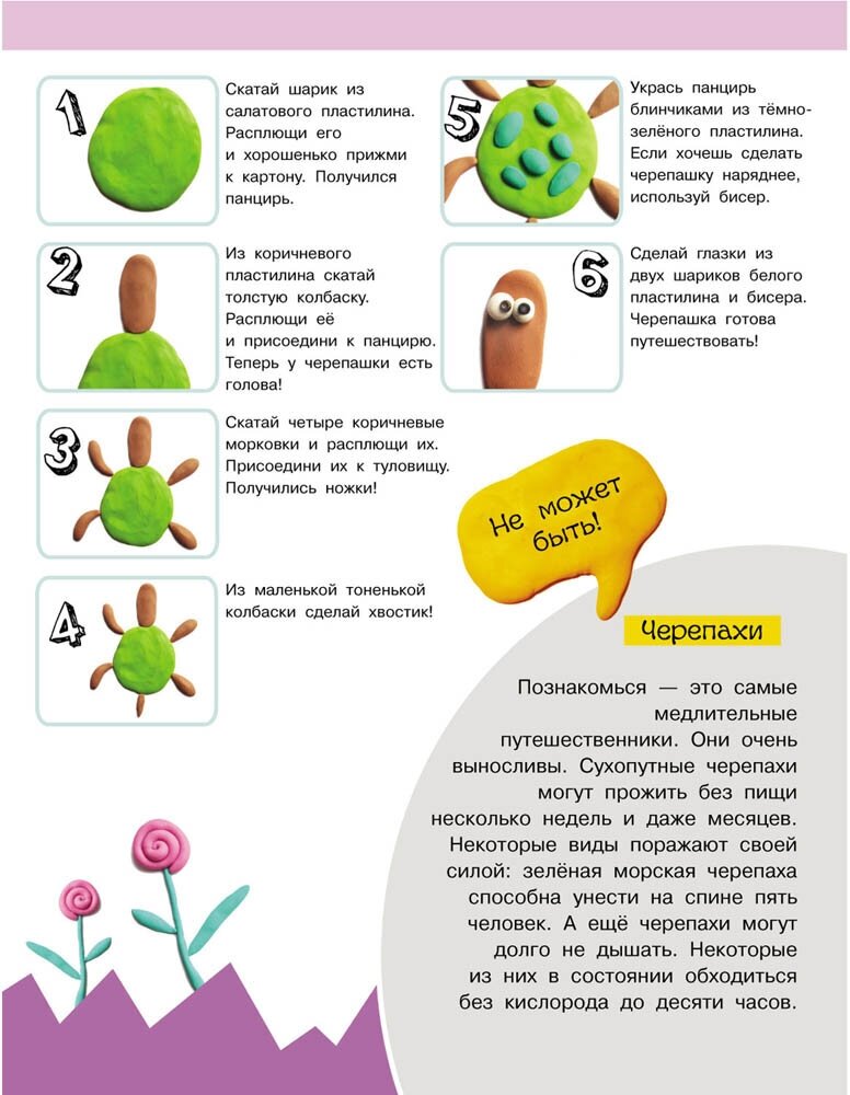 Книга небольшая, почти А4, 32 стр., скорее похожа на журнал. Животные разные и веселые, что не может не поднять настроения от совместного творчества. Все этапы подробно проиллюстрированы и помогут стать малышу маленьким волшебником. Кроме того про каждую зверушку есть интересные факты, которые поближе познакомят малыша с новыми друзьями
