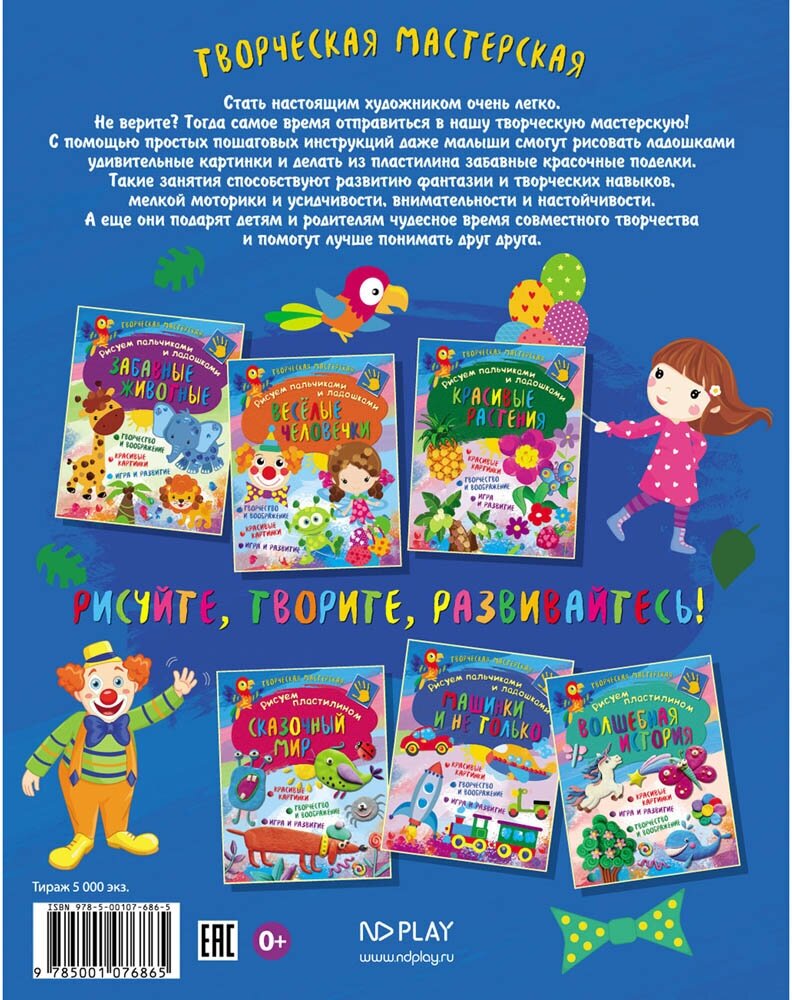 Стать настоящим художником очень легко. Не верите? Тогда самое время отправиться в нашу творческую мастерскую. С помощью простых пошаговых инструкций даже малыши смогут рисовать удивительные картинки и делать из пластилина забавные красочные поделки. Такие занятия способствуют развитию фантазии и творческих навыков, мелкой моторики и усидчивости, внимательности и настойчивости. А еще они подарят детям и родителям чудесное время совместного творчества и помогут лучше понимать друг друга.