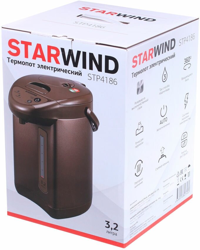 Термопот Starwind 3.2л. 750Вт черный/коричневый STP4186