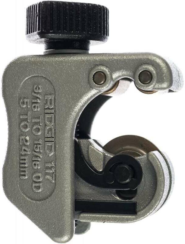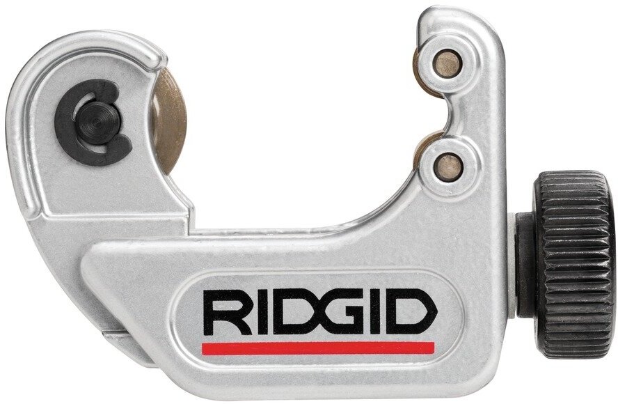 Мини труборезы RIDGID (Риджид) предназначены для резки труб из твердой и мягкой меди, алюминия, латуни и пластмассы в ограниченных пространствах и тесных помещениях.Ручной мини труборез RIDGID производит быстро и чисто отрезание труб диаметром до 28 мм вручную. Имеет быструю и легкую настройку во время работы. Ручным труборезом может производиться холодная резка труб из разных материалов, меняя режущие ролики. Размер трубореза даёт возможность производить резку труб на близких расстояниях от потолка, стены и пола. Высококачественная легированная сталь, из которой изготовлены режущие ролики, обеспечивает максимальный срок работы труборезов RIDGID до смены режущего ролика. Особенности мини трубореза RIDGID 104: прочный, легкий корпус и ползунок, большая ручка винта подачи ролика обеспечивают удобную регулировку давления при резке для аккуратных разрезов; на роликах имеется рифление для срезов рядом с развальцовкой; надёжная винтовая подача режущего ролика; для наилучших результатов резки заменяйте на мини труборезе штифт режущего ролика по меньшей мере при каждой второй замене режущего ролика; возможность замены на другой ролик; 2 опорных ролика. Применение трубореза RIDGID 104: резка тонкостенных труб; резка алюминиевых труб от 5 до 24 мм; резка медных труб от 5 до 24 мм; ремонт и монтаж трубопроводов; ремонт и монтаж гидравлических систем; ремонт и монтаж кондиционеров; ремонтные, монтажные и строительные организации; заводы и промышленные предприятия.