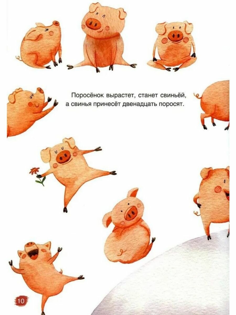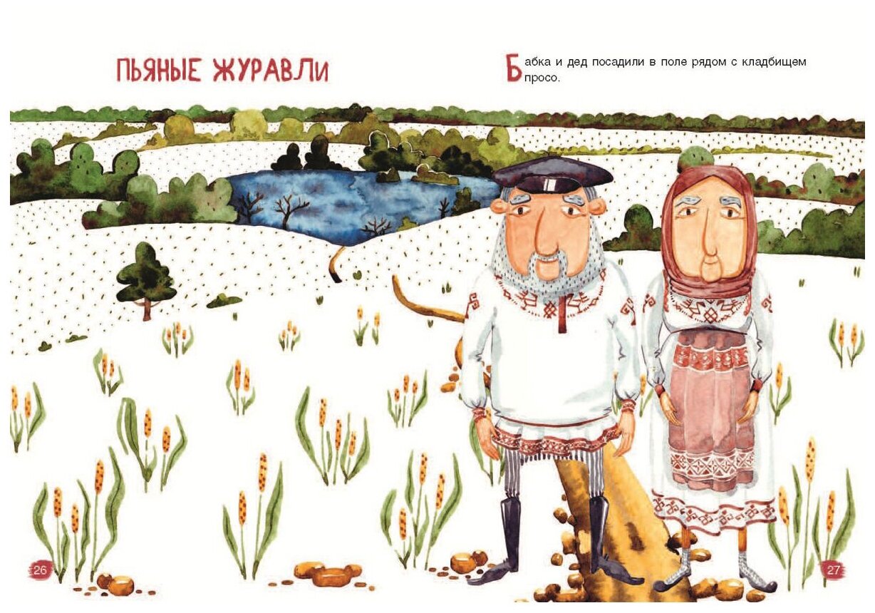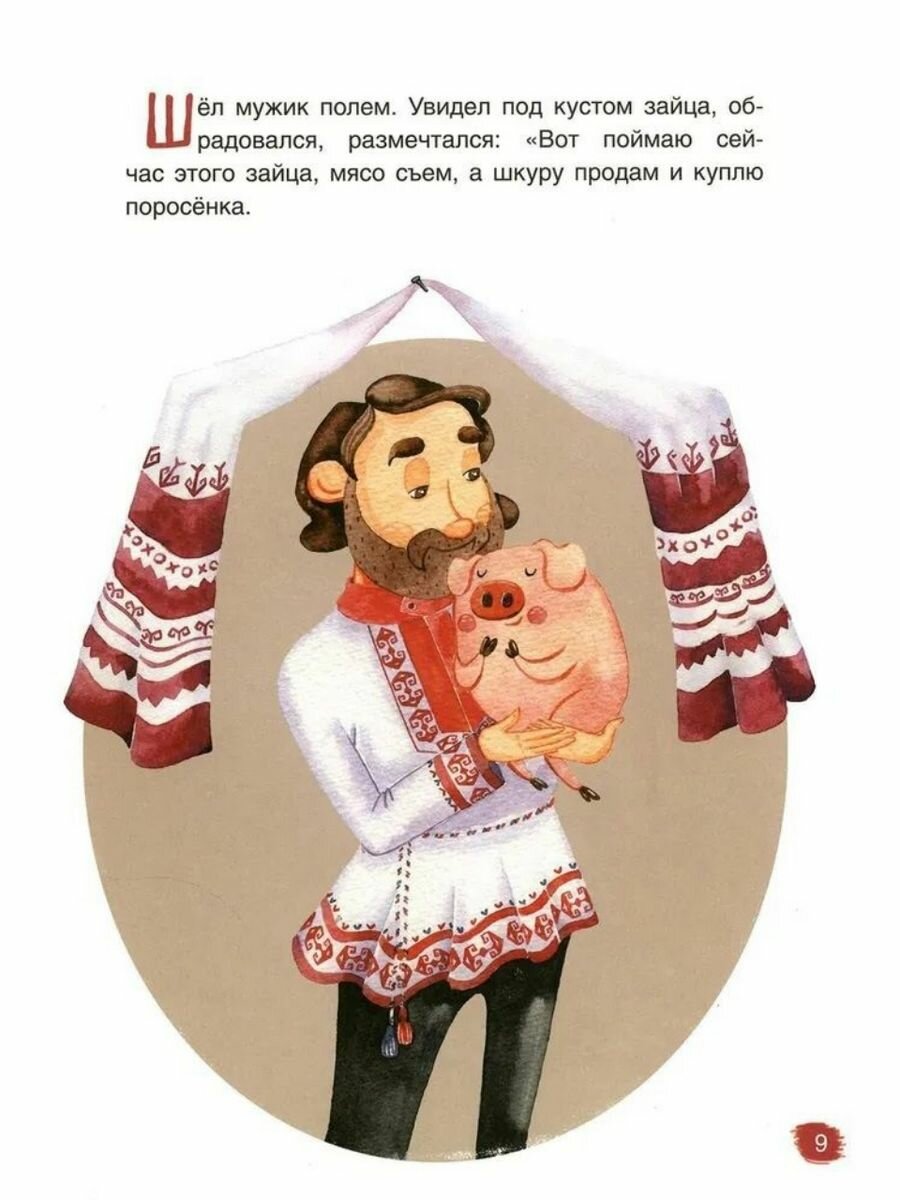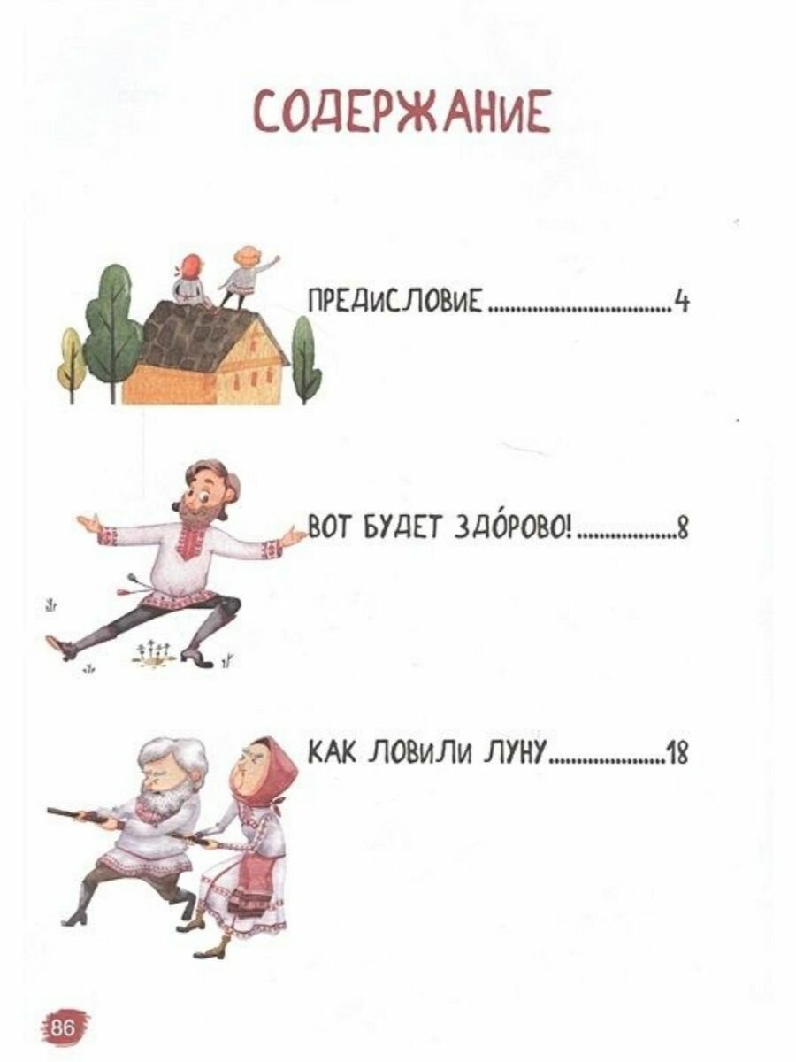 Книга формата приблизительно А4, оформление серийное. Белый плотный офсет. довольно крупный шрифт. На всю книгу 6 сказок. Здесь тот вариант, когда иллюстраций больше, чем текста. Сказки есть очень короткие, есть.. не очень короткие. Но в любом случае не такие уж длинные. Иногда на весь разворот приходится по три-четыре строчки, остальное - иллюстрации. Сказки чаще бытовые с элементами волшебства или в них могут фигурировать животные. Есть забавные и смешные моменты. Принцесс или богатырей, которые их спасают. здесь не будет. Приведу две сказки, чтобы было понятнее, о чем речь. Да, две самые последние сказки в сборнике все же длиннее, чем остальные